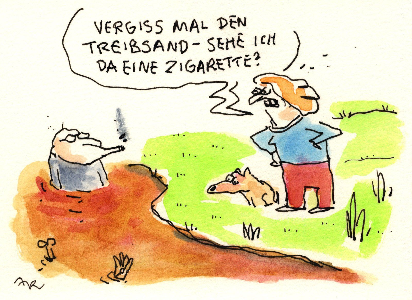 Schon als Kind habe ich seine dicken Knollnasenmänner überall gesehen. In Büchern, Kalendern, auf Postkarten und an Toilettentüren. Lange bevor ich sie dem Künstler zuordnen konnte – oder irgendeine Pointe verstand.
